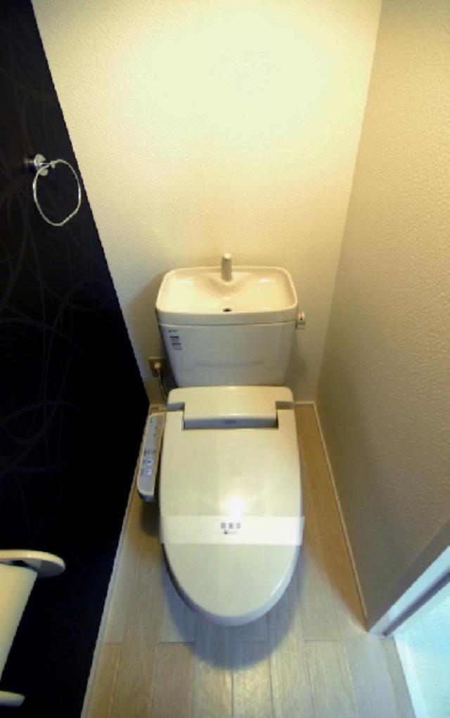 トイレは新設したので、全て新品です! 壁一面には濃い色のアクセントクロスを貼りましたが、狭く感じることなく明るくモダンな雰囲気になりました。 |