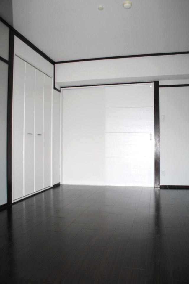 | 前回、同じマンションで2部屋工事をさせていただき、今回で3室目の工事になりました。3DKから2DKに間取り変更を行い、多種多様な使い方ができる広い洋室は古さを感じさせないアンティークな雰囲気に仕上げました。 只今入居者募集中です! |